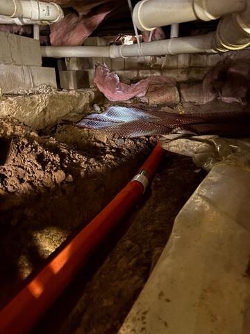 Brett, foreman, and his team began by installing a CleanSpace encapsulation system, an inorganic vapor barrier that is installed all throughout the crawl space, sealing the dirt and moisture out and preventing mold growth. After this, a SmartSump sump pump was put in place to remove any water present on either side of the barrier. Lorenzo's crawl space is now free of moisture!